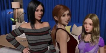 Couples is an adult Visual Novel. You play from the perspective of a man moving to a new city with your girlfriend Claire. Claire is excited because that’s where her best friend Amy visits college. She can’t wait to introduce you and sets up a meeting with Amy and her girlfriend Katie.